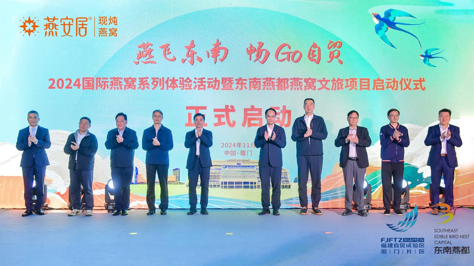 2024 年11月24日,備受矚目的 2024 燕安居國際燕窩系列體驗(yàn)活動在燕安居?xùn)|南燕都產(chǎn)業(yè)園盛大開幕。本次活動系在中國(福建)自由貿(mào)易試驗(yàn)區(qū)廈門片區(qū)管委會、廈門市海滄區(qū)人民政府的指導(dǎo)下,燕安居聯(lián)合中國醫(yī)藥物資協(xié)會道地藥材分會、中國醫(yī)藥物資協(xié)會燕窩分會成功舉辦,